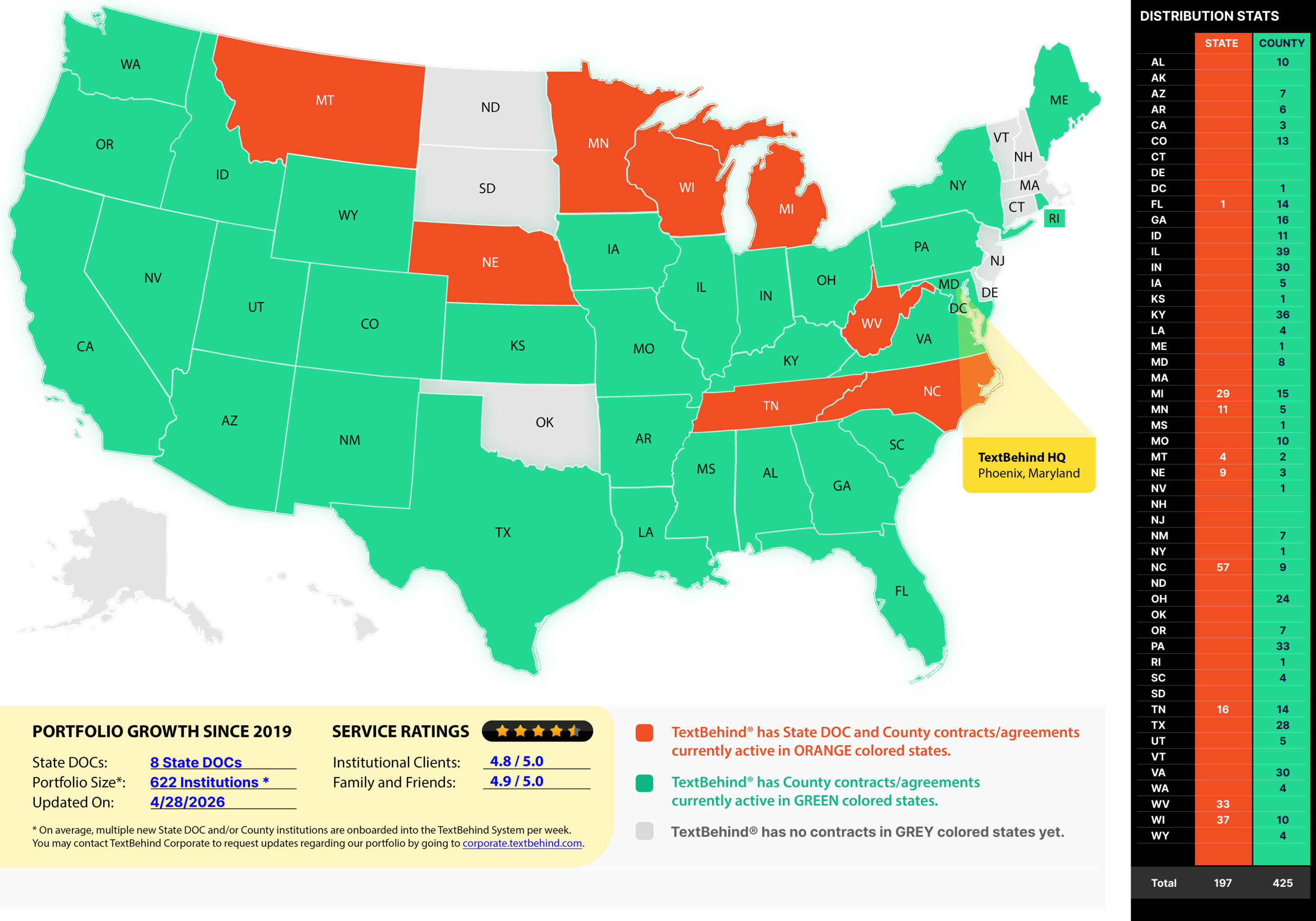 The consistency and discipline has its rewards and that evident by our exponential growth since 2020. After scoring our first county correctional facility contract on November 18, 2019, TextBehind continued to grow faster with each passing year. As of September 2025, TextBehind is eliminating contraband and connecting relationships in at least 574 institutions nationwide.